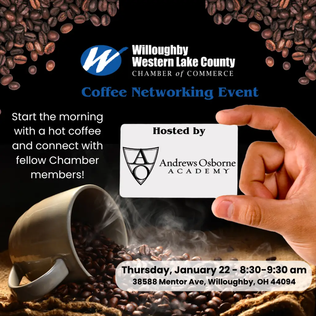 The WWLCC invites you to join us at Andrews Osborne Academy, located at 38588 Mentor Avenue in Willoughby, to network and enjoy some refreshments and friendly conversation on Thursday, January 22 from 8:30-9:30 am.
